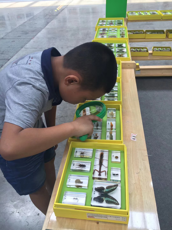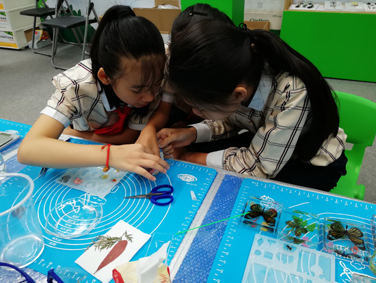 展會現(xiàn)場-工作人員給來訪人員介紹DIY學生實驗制作解決方案產(chǎn)品及學生們展示DIY制作標本